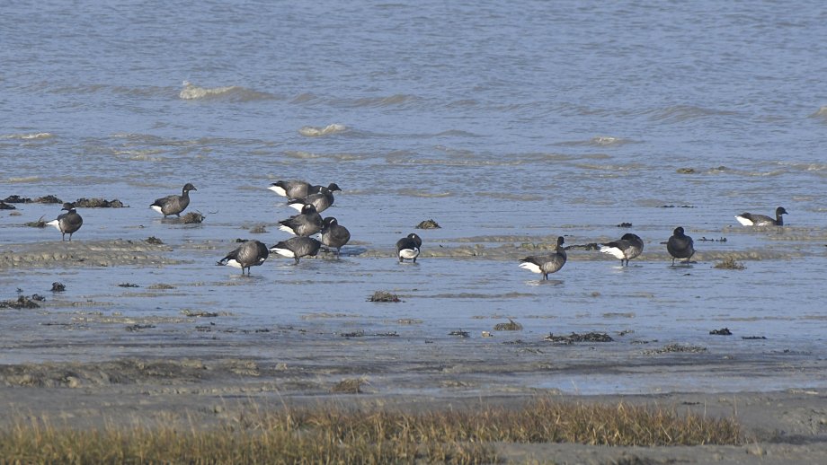 Tadorne de Belon, pluvier argenté, chevalier gambette, grand gravelot, bernache cravant, bécasseau variable (plus d’un millier, Matthieu spécialiste avait fait le compte), aigrette garzette, courlis cendré, canard col vert, grand corbeau, héron cendré, tarier pâtre.