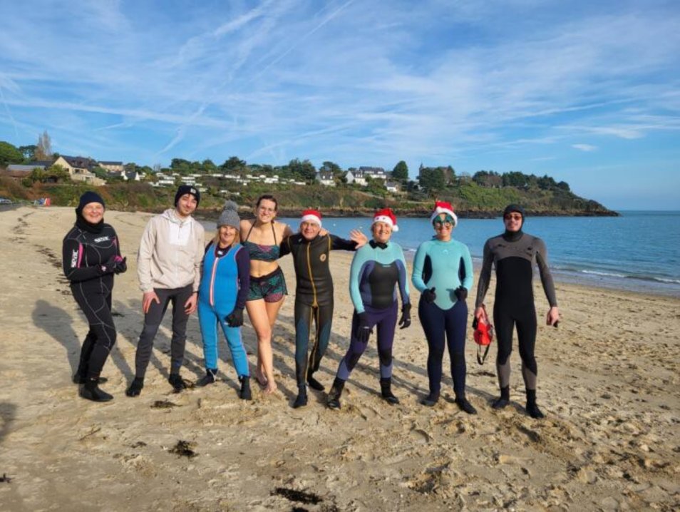 Port Mer, et hop, tous à l’eau pour le longe-côte, les plus téméraires (Christine et Marine en maillot de bain) et les autres en combinaison, même pour Marwane qui découvrait la région. Un grèbe huppé nous a même accompagnés.